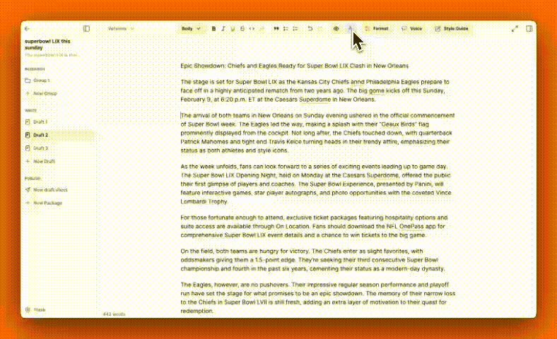 Symbolic's Editor now has an advanced language tool to make line-edit suggestions such a spelling and grammar. This works in the background as text is added to the Editor. Writers can click the button in the top bar menu to toggle the service on and off.