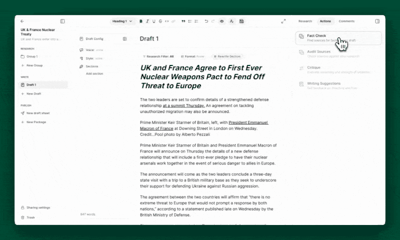 Editors have the discretion to link a source to its associated fact, giving writers and editors full control over how and when references are incorporated. This flexibility transforms what was previously a manual and time-intensive task into a simple, efficient process.