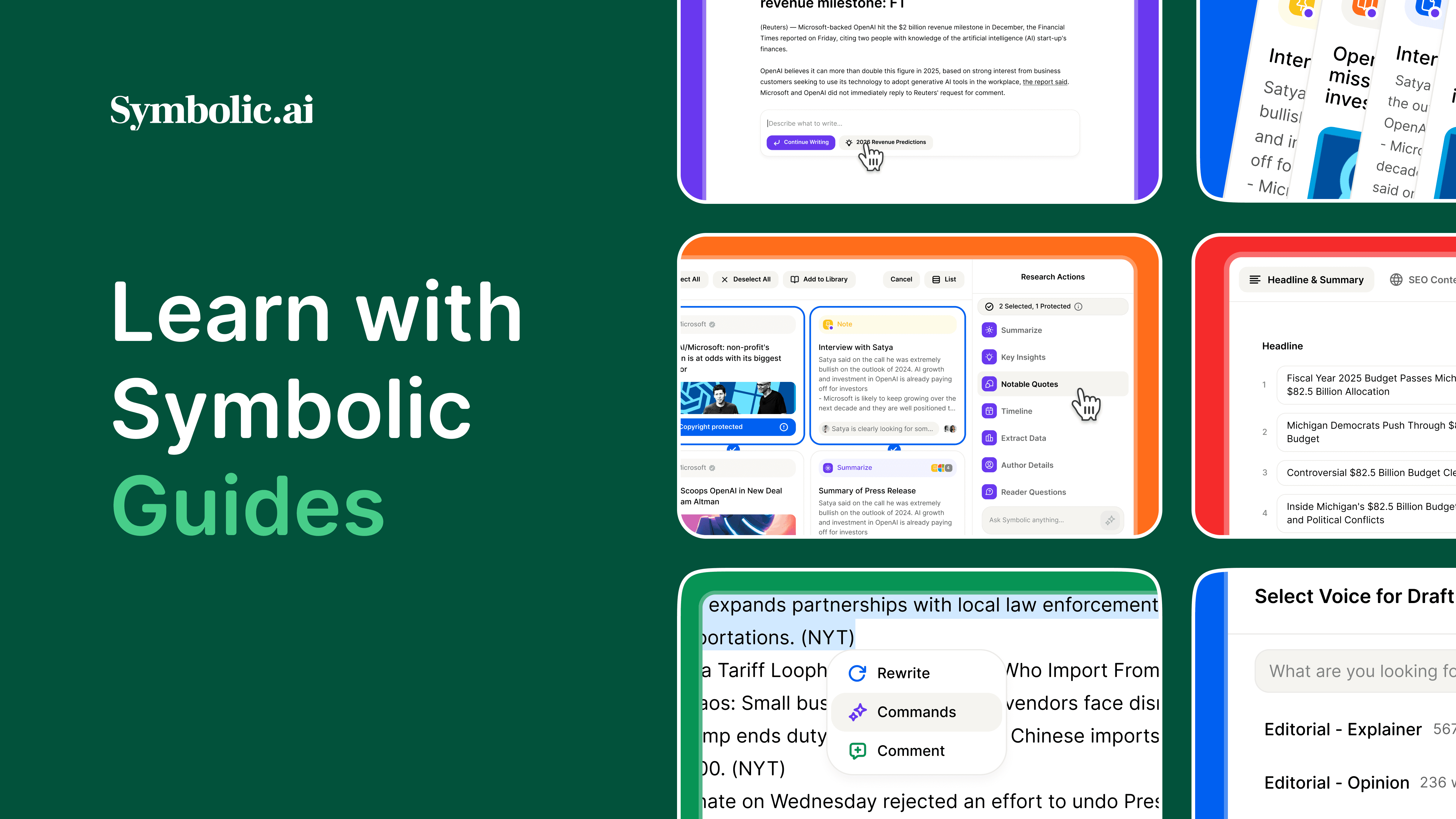 Symbolic has a new set of user guides: https://symbolic.ai/guides. These guides take a step by step approach to some common workflows on the platform, from organizing Research to creating custom Voice and Format instructions, to writing a Sectioned Draft. More guides will be added over time, and if there is something that you would like to see as a reference, please reach out directly to us.