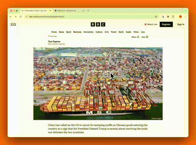 Various internet hosting platforms like Cloudflare are actively blocking sites from AI-related domains or actions. At the same time, Symbolic is a publisher-first platform that respects paywalls and intellectual property rights and does not access unauthorized content. The Symbolic AI Chrome extension (a Google approved extension available in the Chrome store) considers both of these factors, making it easy for individuals to seamlessly import content that they already have access to from the web. Working with either your logged-in accounts or freely available content sites, it removes the need for copying and pasting and imports web links quickly and seamlessly into your Library or your Projects. This facilitates the use of content that you have paid for, eliminates host blocking issues, and simplifies managing source content. We encourage any of our users that regularly import source content to download and use the extension (as below).